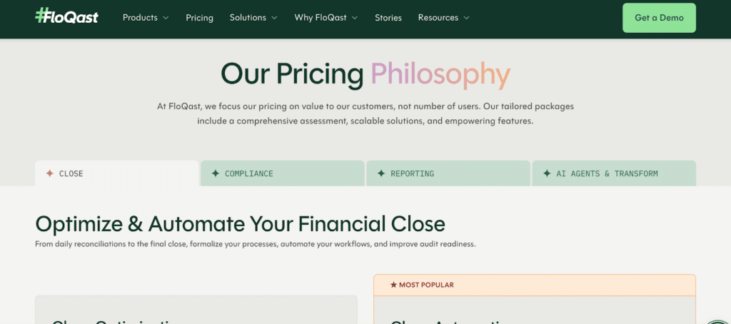 FloQast starts around $999-$1,920 monthly ($12,000-$23,000 annually baseline). Custom quotes depend on organizational needs rather than per-user seats.