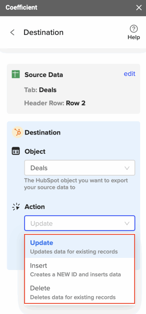 - Export data back to HubSpot when you need to update records in bulk