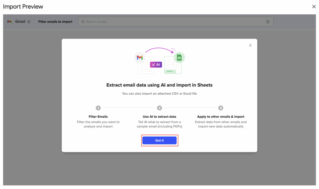 Coefficient takes a fundamentally different approach to Gmail-NetSuite integration. Rather than connecting the systems directly, it brings data from both into Google Sheets or Excel, where finance teams can build custom email data workflows using familiar spreadsheet tools.