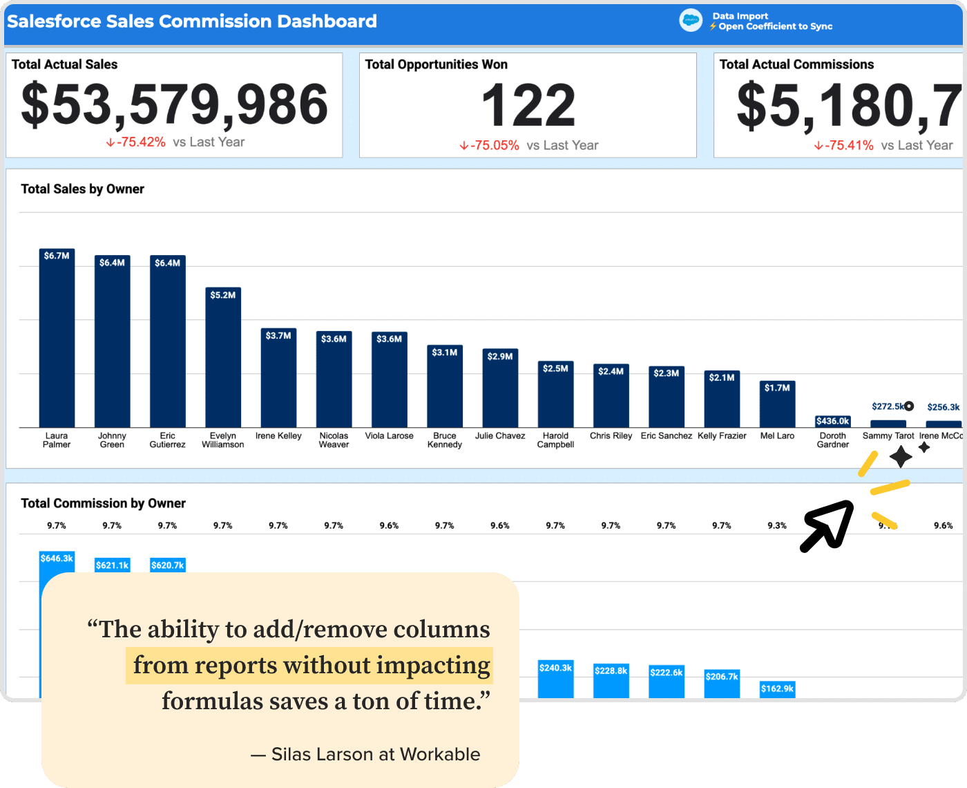 Build automated commission trackers with live CRM data in Google Sheets & Excel. No coding required. Use AI for creating dashboards, complex calculation logics, trigger slack or email alerts & more.
